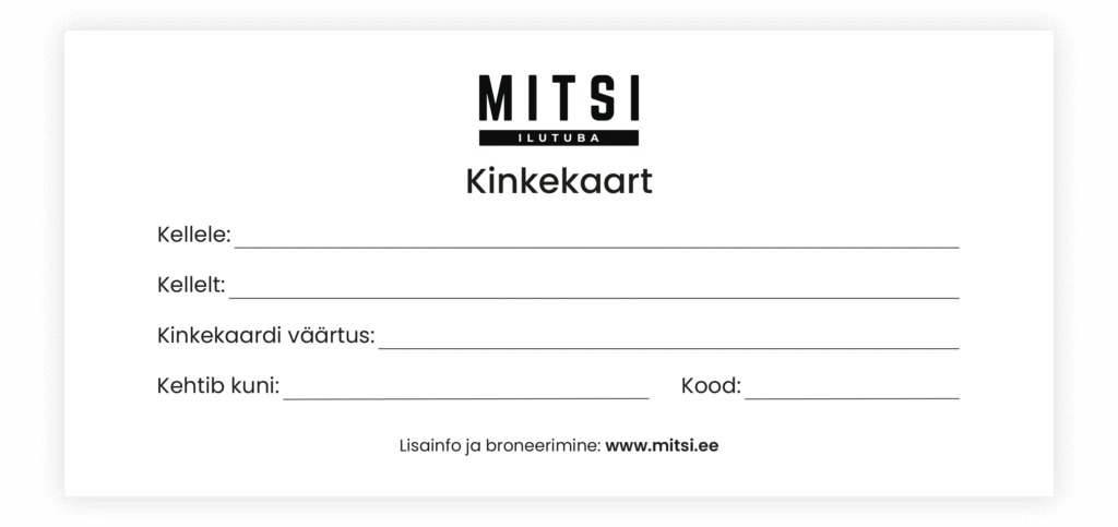 Soovid kinkekaarti tellida või tekkis küsimusi? – Võta ühendust info@mitsi.ee